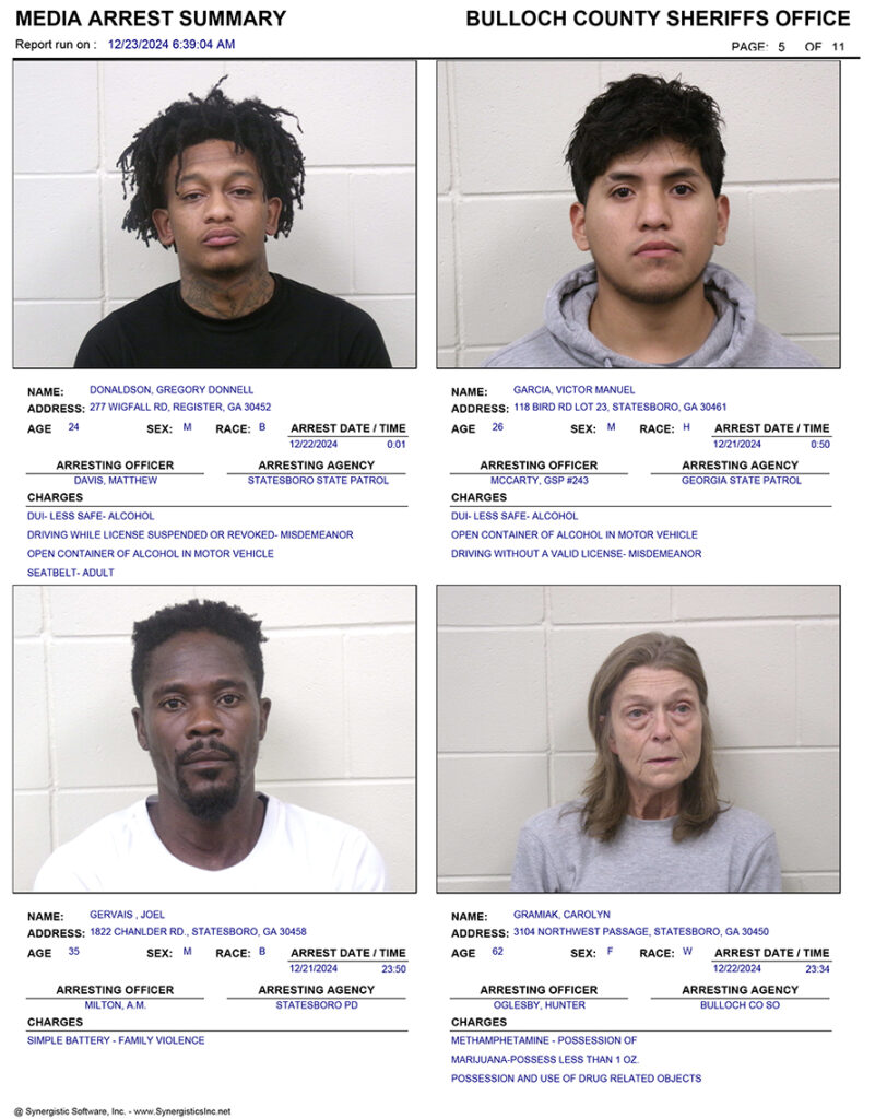 These records are matters of public information provided by the Bulloch County Sheriff’s Office. Booking reports are details of arrests only. All persons below are considered to be innocent unless proven otherwise in a court of law.