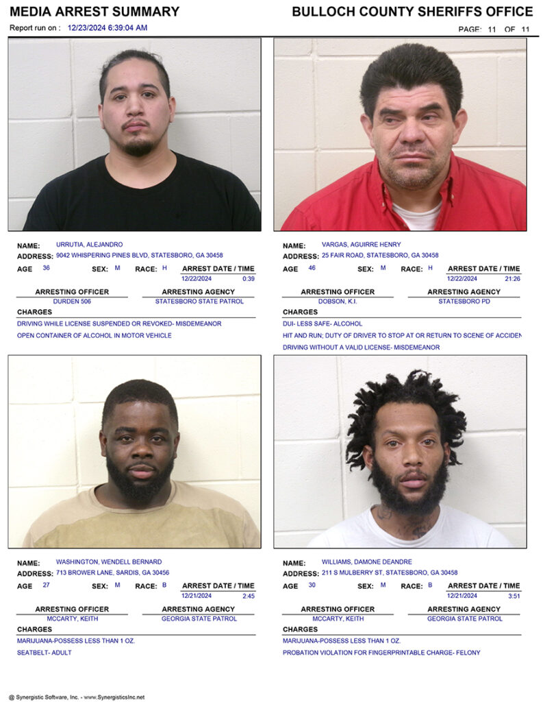 These records are matters of public information provided by the Bulloch County Sheriff’s Office. Booking reports are details of arrests only. All persons below are considered to be innocent unless proven otherwise in a court of law.