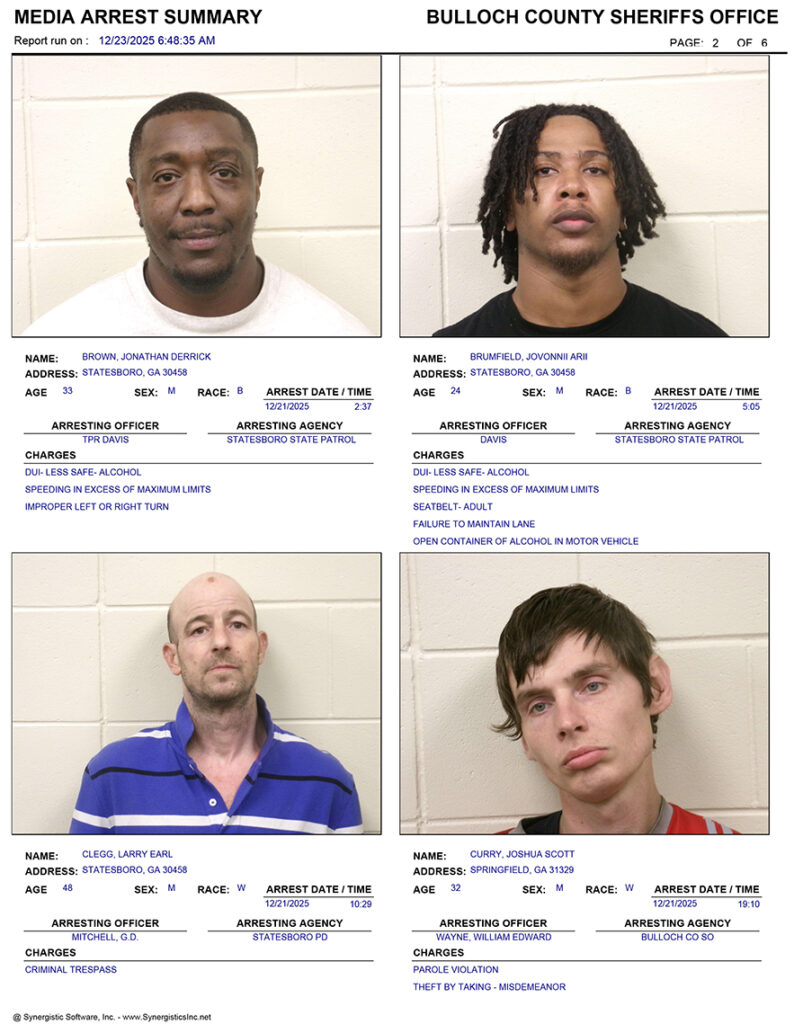 These records are matters of public information provided by the Bulloch County Sheriff’s Office. Booking reports are details of arrests only. All persons below are considered to be innocent unless proven otherwise in a court of law.