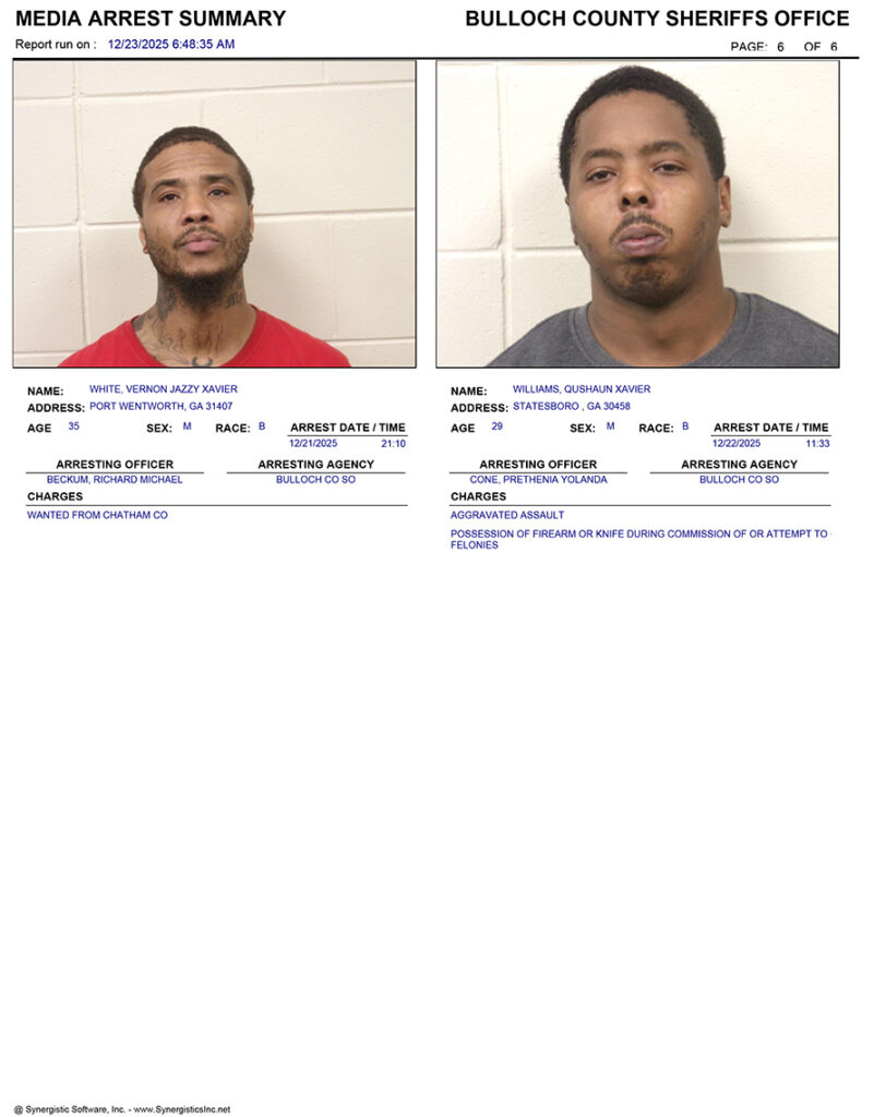 These records are matters of public information provided by the Bulloch County Sheriff’s Office. Booking reports are details of arrests only. All persons below are considered to be innocent unless proven otherwise in a court of law.