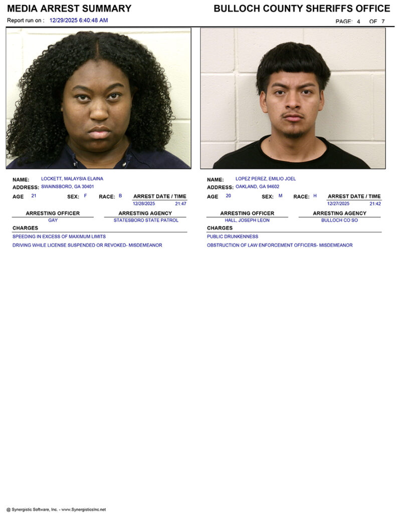 These records are matters of public information provided by the Bulloch County Sheriff’s Office. Booking reports are details of arrests only. All persons below are considered to be innocent unless proven otherwise in a court of law.