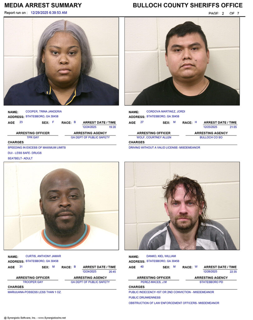 These records are matters of public information provided by the Bulloch County Sheriff’s Office. Booking reports are details of arrests only. All persons below are considered to be innocent unless proven otherwise in a court of law.