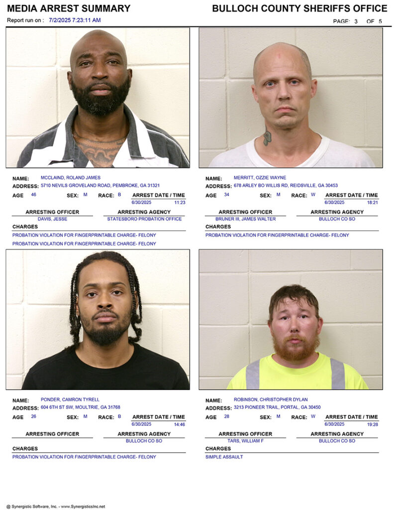 These records are matters of public information provided by the Bulloch County Sheriff’s Office. Booking reports are details of arrests only. All persons below are considered to be innocent unless proven otherwise in a court of law.