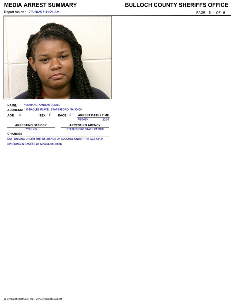 These records are matters of public information provided by the Bulloch County Sheriff’s Office. Booking reports are details of arrests only. All persons below are considered to be innocent unless proven otherwise in a court of law.