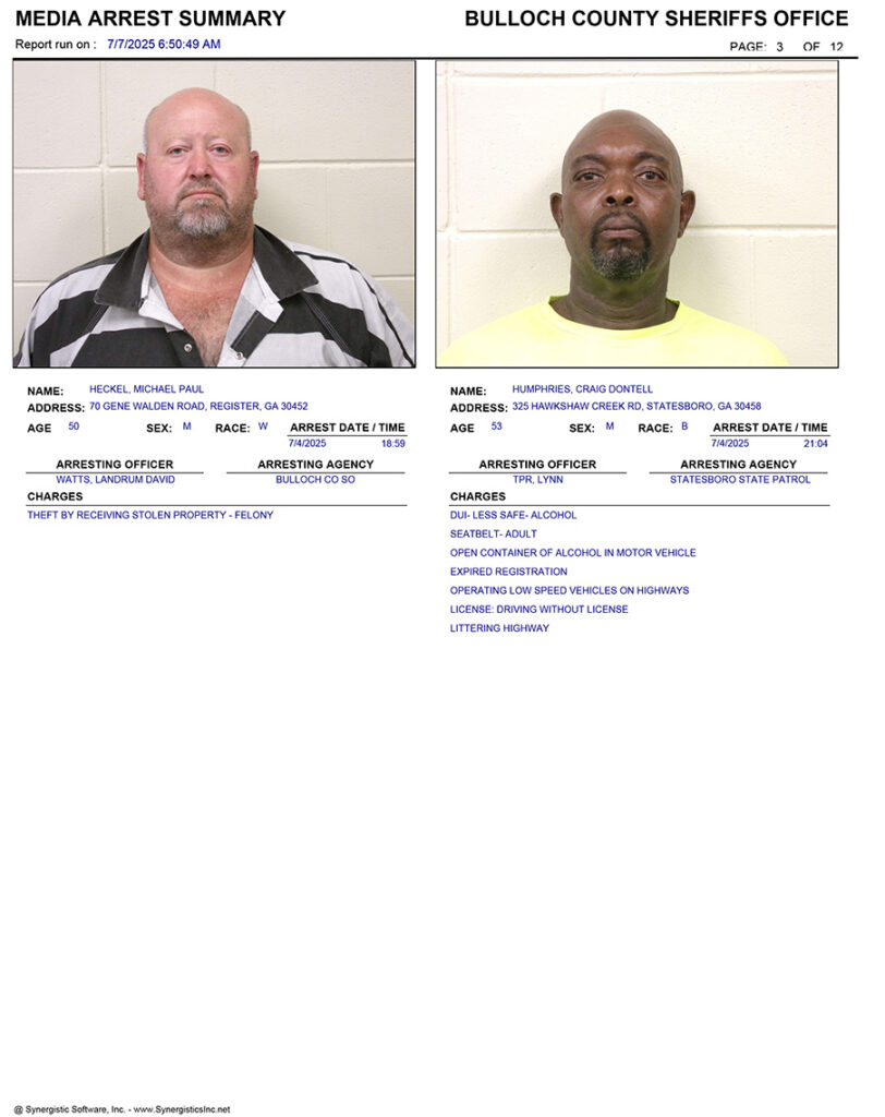 These records are matters of public information provided by the Bulloch County Sheriff’s Office. Booking reports are details of arrests only. All persons below are considered to be innocent unless proven otherwise in a court of law.