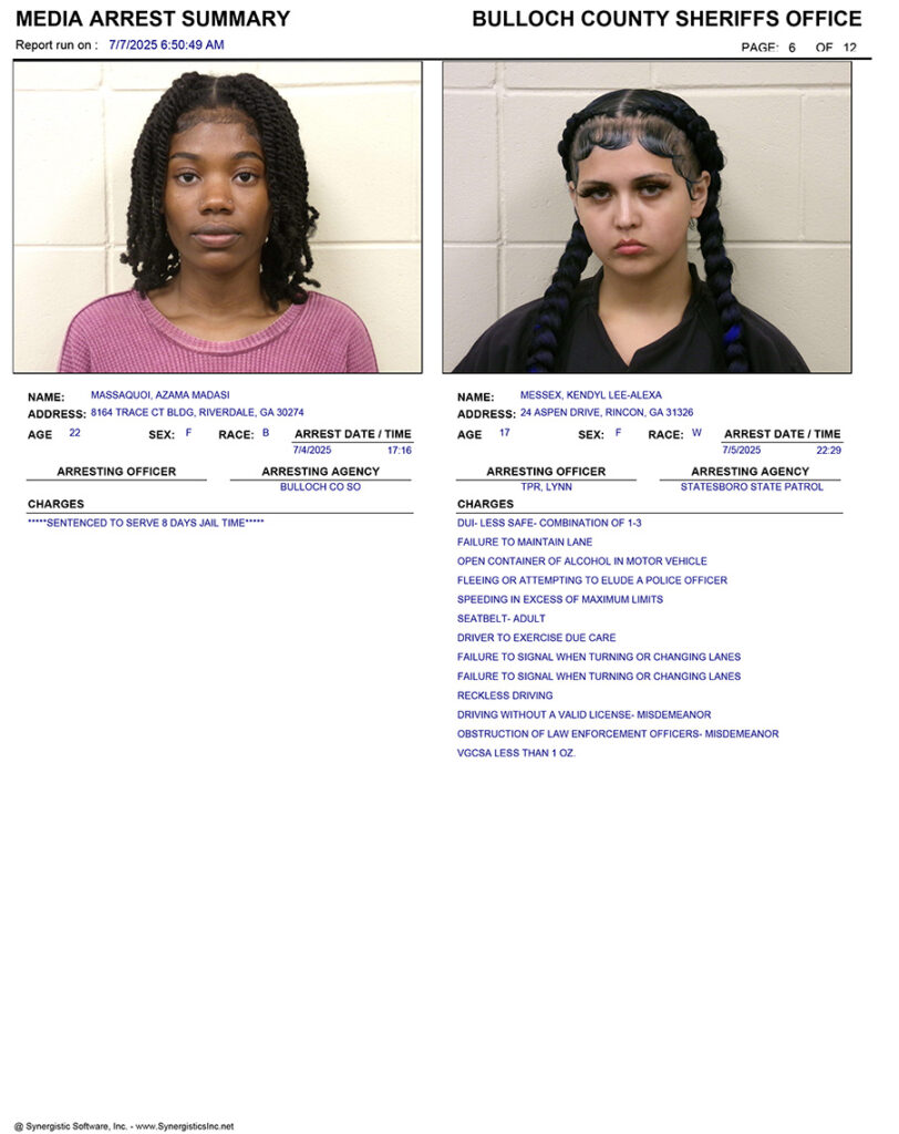 These records are matters of public information provided by the Bulloch County Sheriff’s Office. Booking reports are details of arrests only. All persons below are considered to be innocent unless proven otherwise in a court of law.