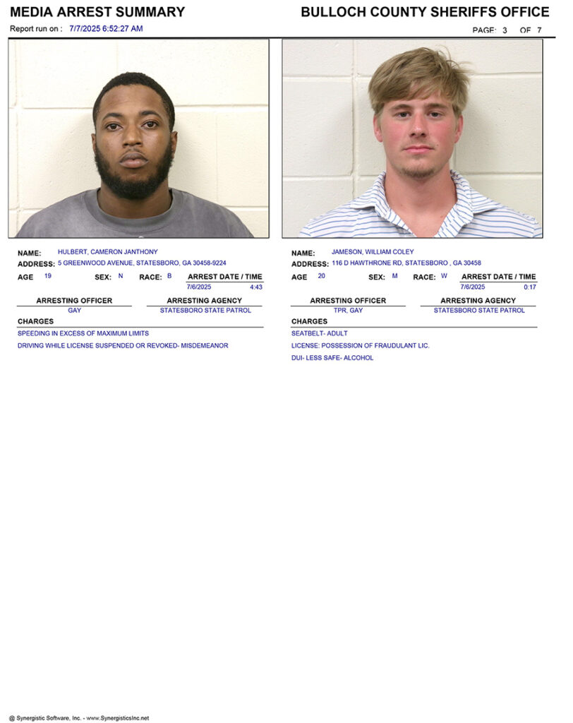 These records are matters of public information provided by the Bulloch County Sheriff’s Office. Booking reports are details of arrests only. All persons below are considered to be innocent unless proven otherwise in a court of law.