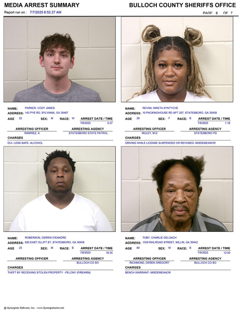 These records are matters of public information provided by the Bulloch County Sheriff’s Office. Booking reports are details of arrests only. All persons below are considered to be innocent unless proven otherwise in a court of law.