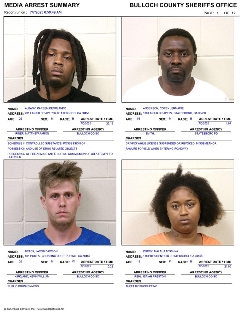 These records are matters of public information provided by the Bulloch County Sheriff’s Office. Booking reports are details of arrests only. All persons below are considered to be innocent unless proven otherwise in a court of law.