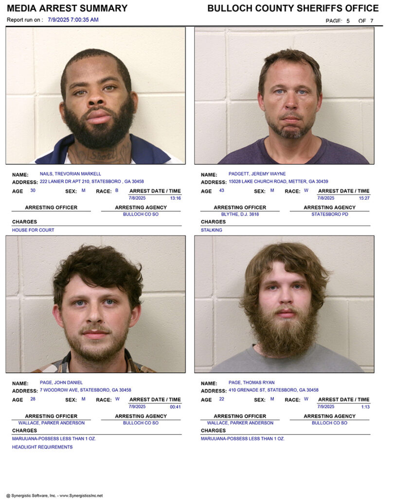 These records are matters of public information provided by the Bulloch County Sheriff’s Office. Booking reports are details of arrests only. All persons below are considered to be innocent unless proven otherwise in a court of law.