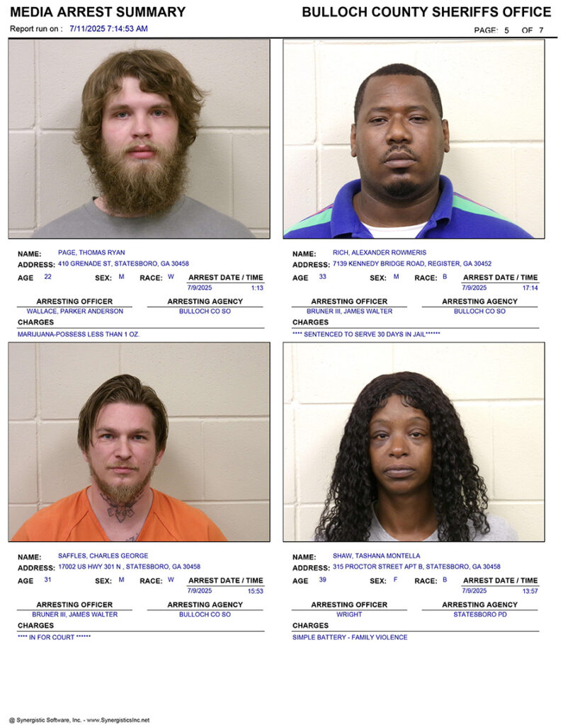 These records are matters of public information provided by the Bulloch County Sheriff’s Office. Booking reports are details of arrests only. All persons below are considered to be innocent unless proven otherwise in a court of law.