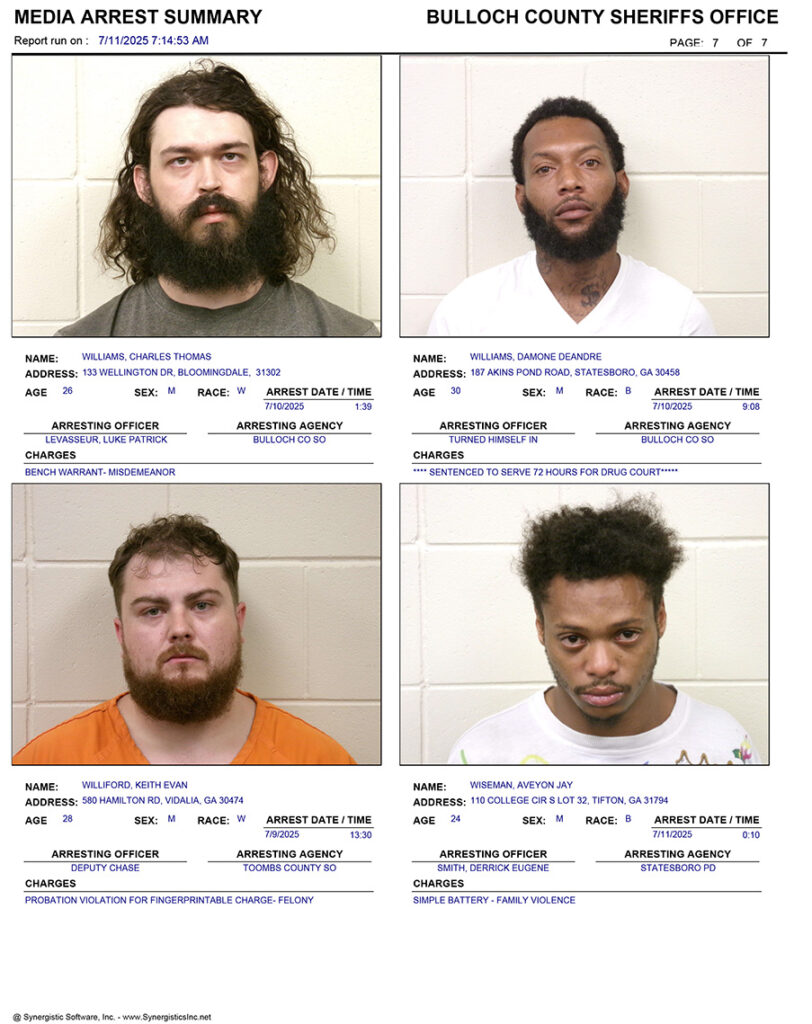 These records are matters of public information provided by the Bulloch County Sheriff’s Office. Booking reports are details of arrests only. All persons below are considered to be innocent unless proven otherwise in a court of law.