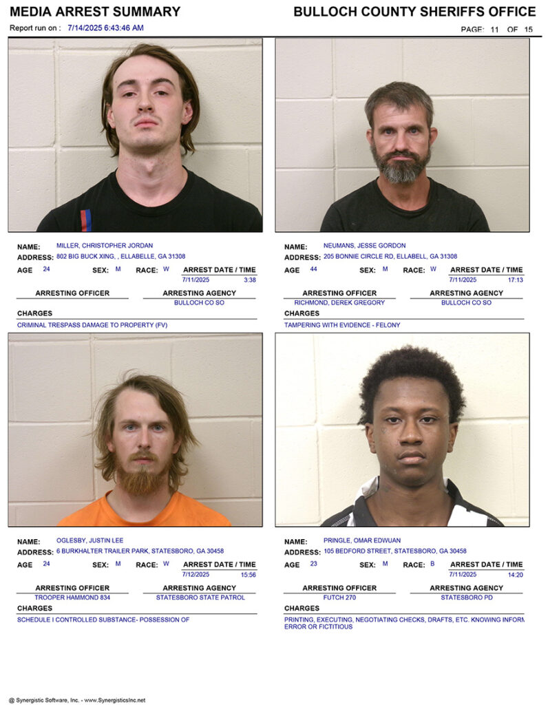 These records are matters of public information provided by the Bulloch County Sheriff’s Office. Booking reports are details of arrests only. All persons below are considered to be innocent unless proven otherwise in a court of law.