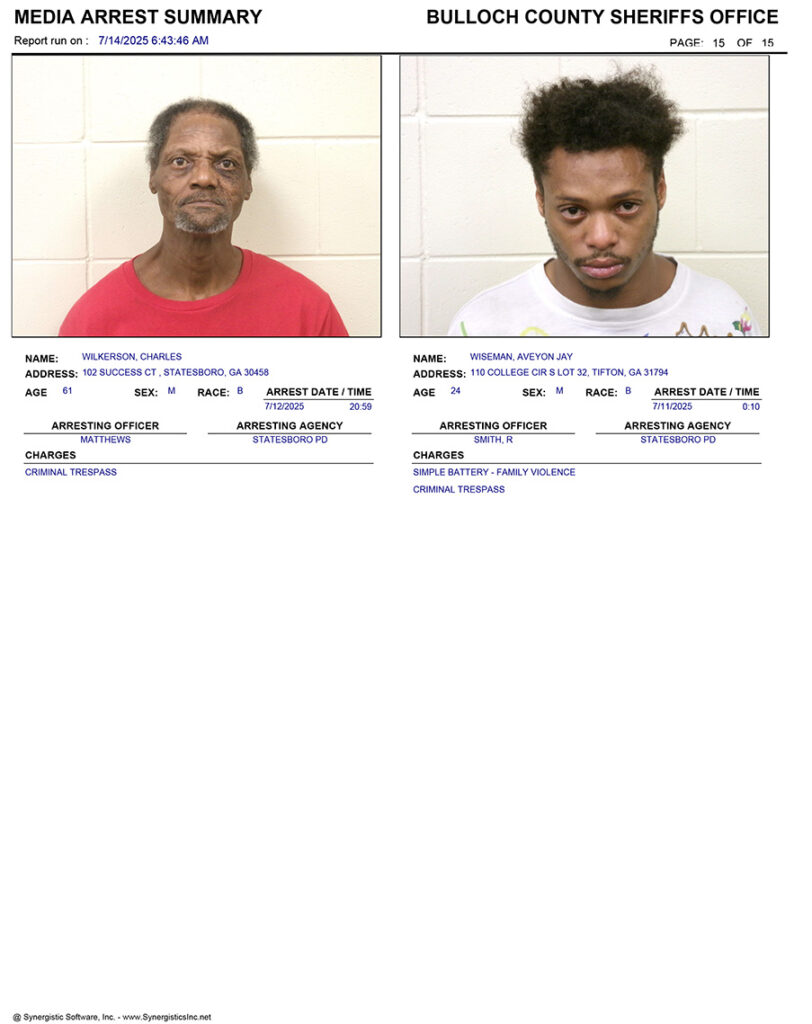 These records are matters of public information provided by the Bulloch County Sheriff’s Office. Booking reports are details of arrests only. All persons below are considered to be innocent unless proven otherwise in a court of law.