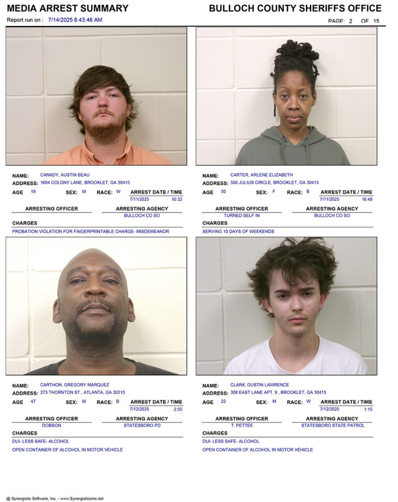 These records are matters of public information provided by the Bulloch County Sheriff’s Office. Booking reports are details of arrests only. All persons below are considered to be innocent unless proven otherwise in a court of law.