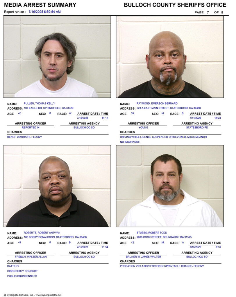These records are matters of public information provided by the Bulloch County Sheriff’s Office. Booking reports are details of arrests only. All persons below are considered to be innocent unless proven otherwise in a court of law.