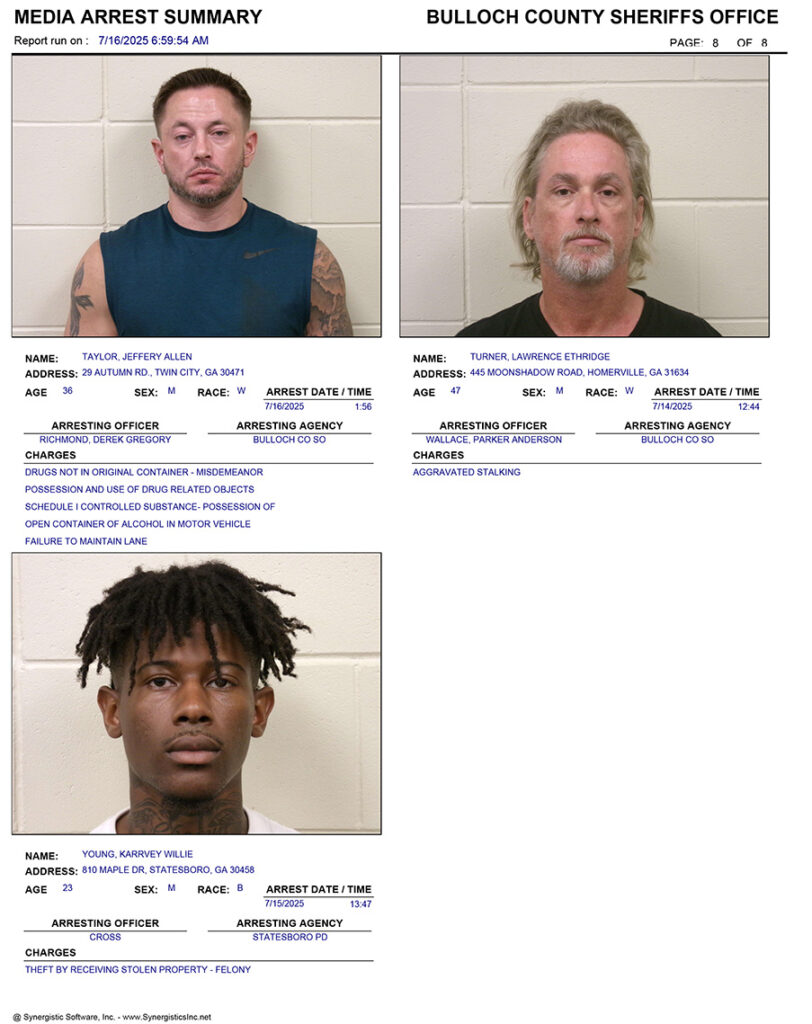 These records are matters of public information provided by the Bulloch County Sheriff’s Office. Booking reports are details of arrests only. All persons below are considered to be innocent unless proven otherwise in a court of law.