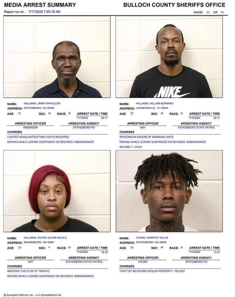 These records are matters of public information provided by the Bulloch County Sheriff’s Office. Booking reports are details of arrests only. All persons below are considered to be innocent unless proven otherwise in a court of law.