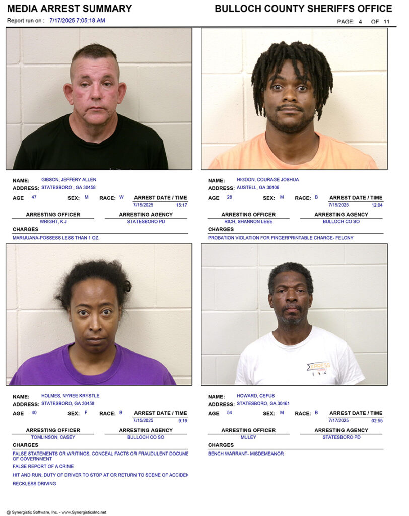 These records are matters of public information provided by the Bulloch County Sheriff’s Office. Booking reports are details of arrests only. All persons below are considered to be innocent unless proven otherwise in a court of law.