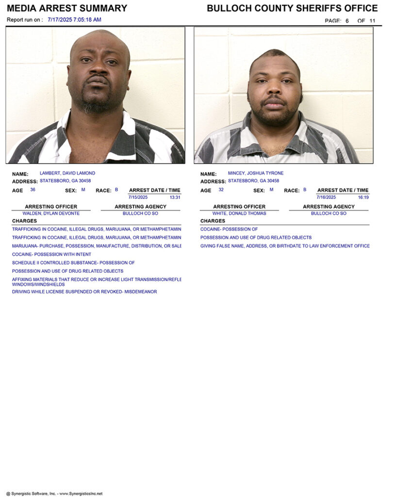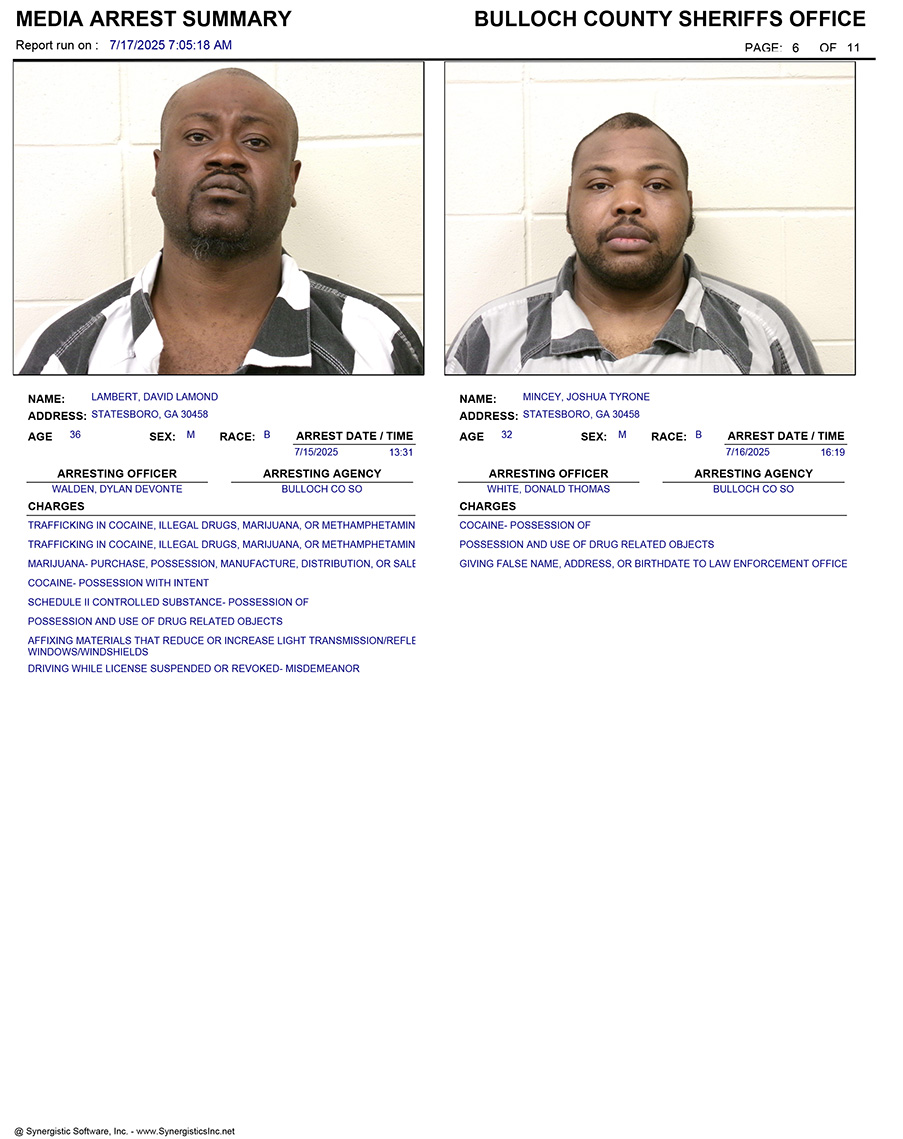 These records are matters of public information provided by the Bulloch County Sheriff’s Office. Booking reports are details of arrests only. All persons below are considered to be innocent unless proven otherwise in a court of law.