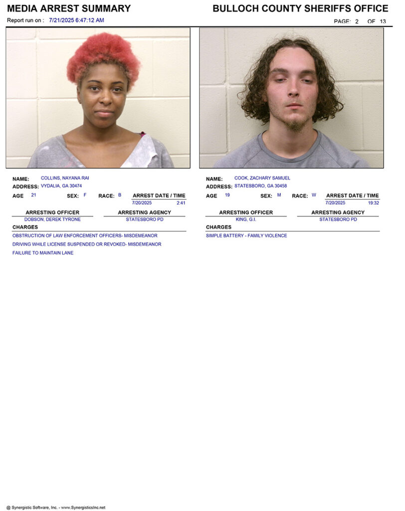 These records are matters of public information provided by the Bulloch County Sheriff’s Office. Booking reports are details of arrests only. All persons below are considered to be innocent unless proven otherwise in a court of law.