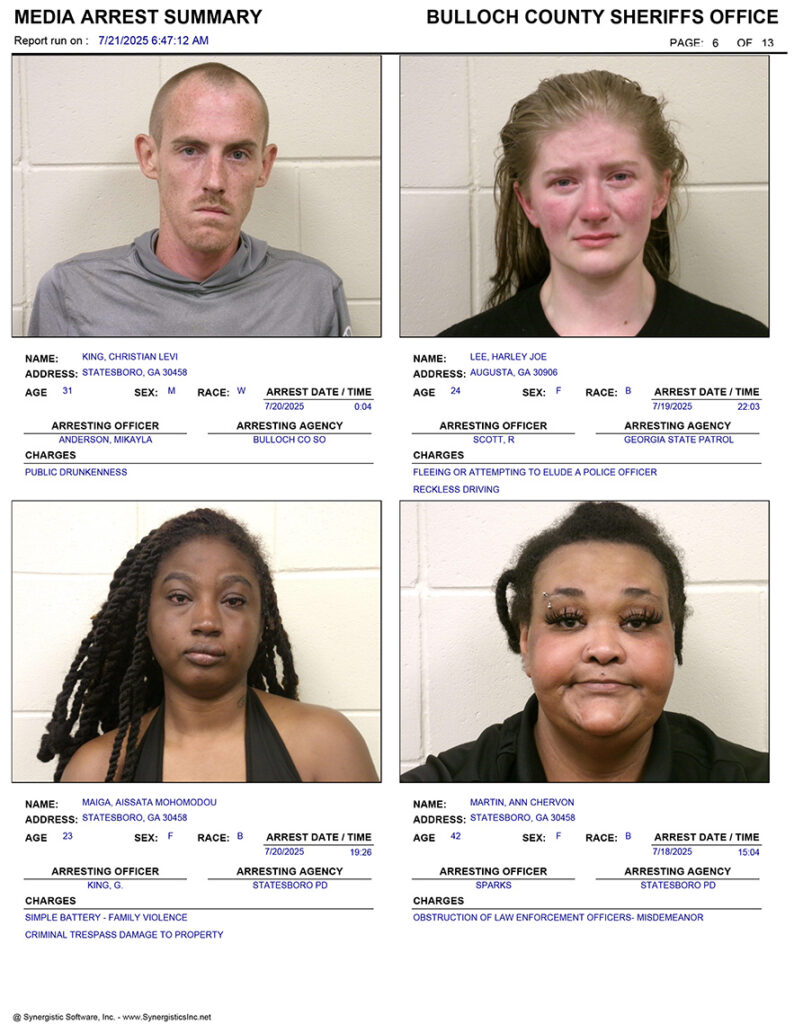 These records are matters of public information provided by the Bulloch County Sheriff’s Office. Booking reports are details of arrests only. All persons below are considered to be innocent unless proven otherwise in a court of law.