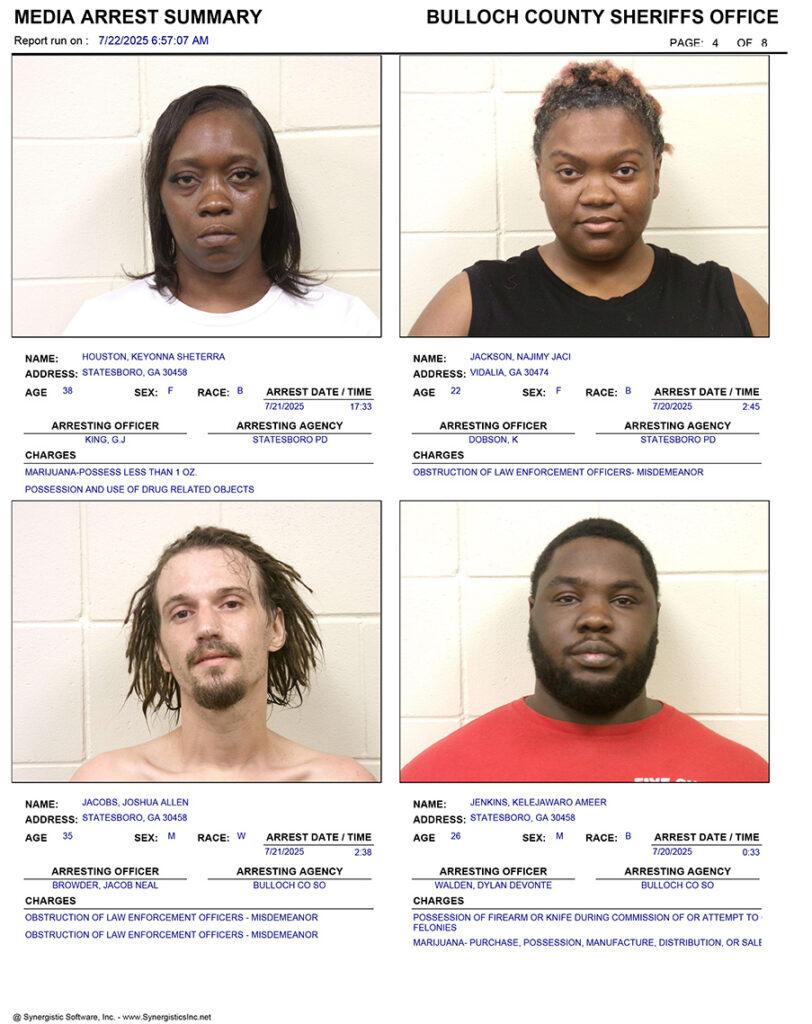 These records are matters of public information provided by the Bulloch County Sheriff’s Office. Booking reports are details of arrests only. All persons below are considered to be innocent unless proven otherwise in a court of law.