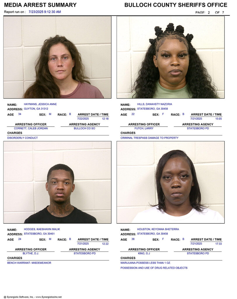 These records are matters of public information provided by the Bulloch County Sheriff’s Office. Booking reports are details of arrests only. All persons below are considered to be innocent unless proven otherwise in a court of law.