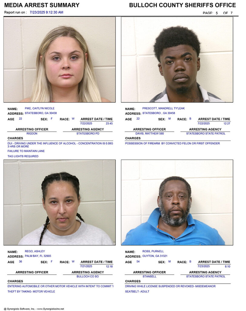 These records are matters of public information provided by the Bulloch County Sheriff’s Office. Booking reports are details of arrests only. All persons below are considered to be innocent unless proven otherwise in a court of law.