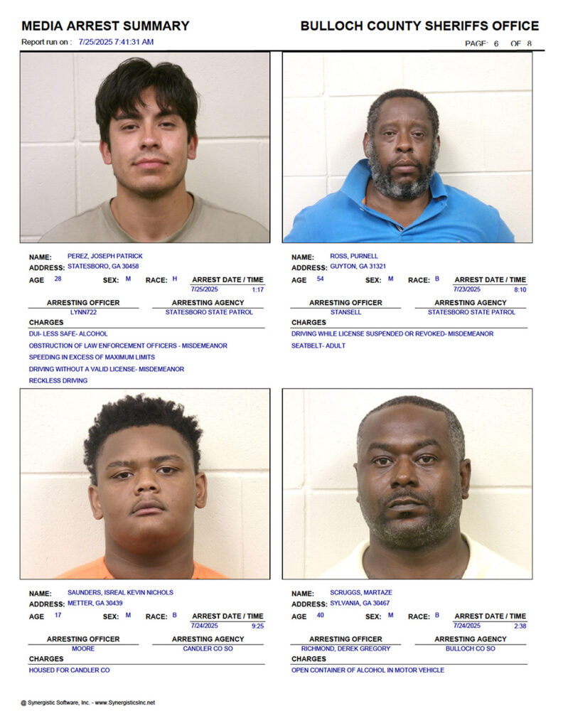 These records are matters of public information provided by the Bulloch County Sheriff’s Office. Booking reports are details of arrests only. All persons below are considered to be innocent unless proven otherwise in a court of law.