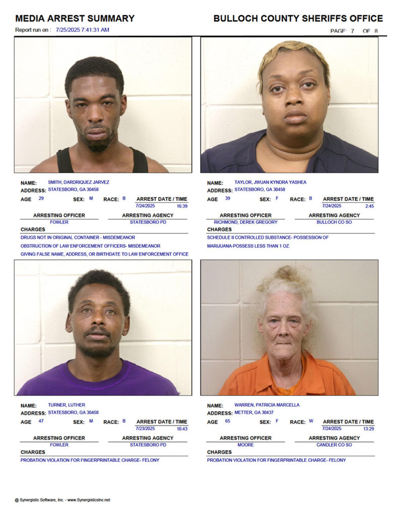 These records are matters of public information provided by the Bulloch County Sheriff’s Office. Booking reports are details of arrests only. All persons below are considered to be innocent unless proven otherwise in a court of law.