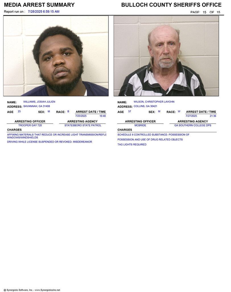 These records are matters of public information provided by the Bulloch County Sheriff’s Office. Booking reports are details of arrests only. All persons below are considered to be innocent unless proven otherwise in a court of law.