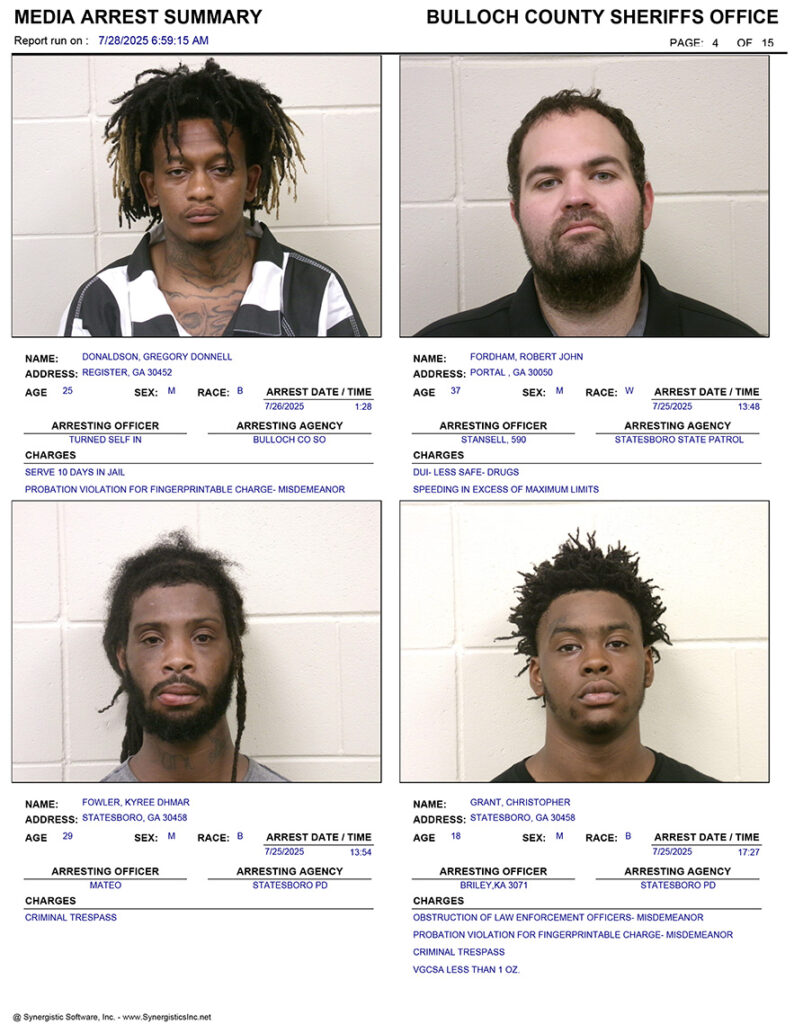 These records are matters of public information provided by the Bulloch County Sheriff’s Office. Booking reports are details of arrests only. All persons below are considered to be innocent unless proven otherwise in a court of law.