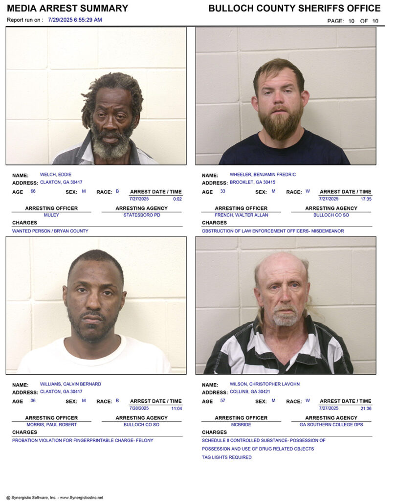 These records are matters of public information provided by the Bulloch County Sheriff’s Office. Booking reports are details of arrests only. All persons below are considered to be innocent unless proven otherwise in a court of law.