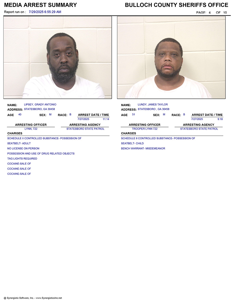 These records are matters of public information provided by the Bulloch County Sheriff’s Office. Booking reports are details of arrests only. All persons below are considered to be innocent unless proven otherwise in a court of law.