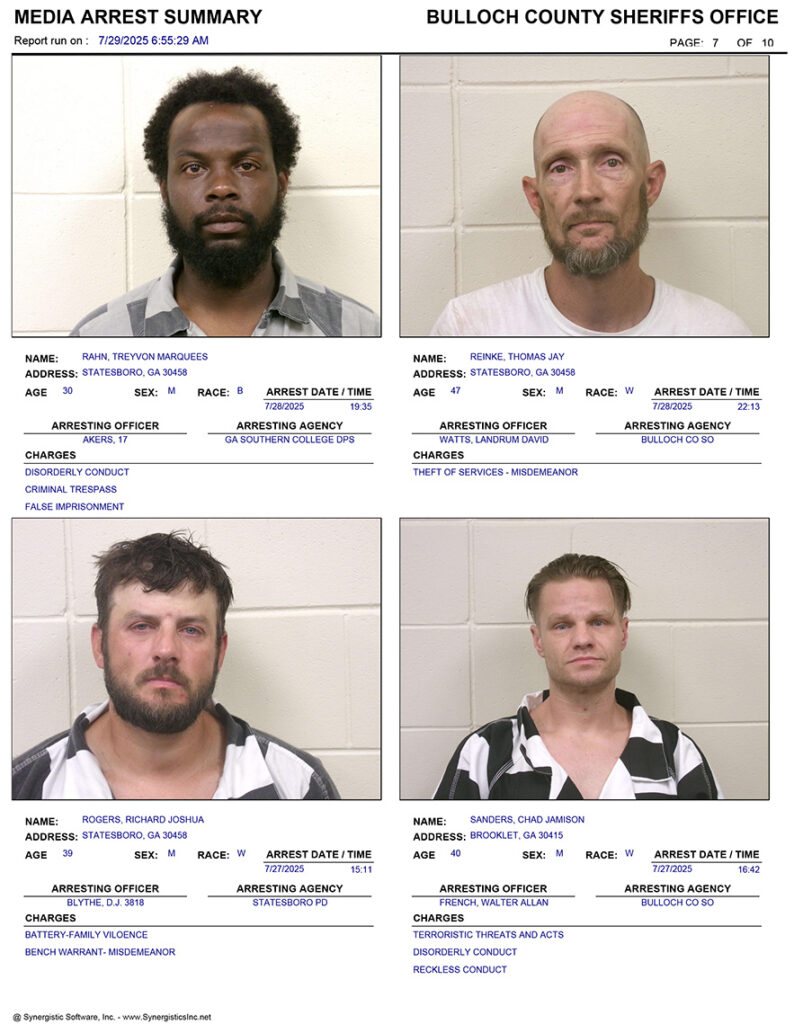 These records are matters of public information provided by the Bulloch County Sheriff’s Office. Booking reports are details of arrests only. All persons below are considered to be innocent unless proven otherwise in a court of law.