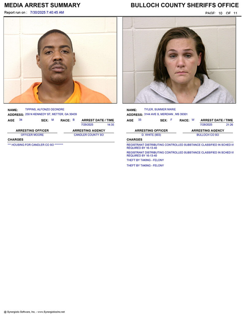 These records are matters of public information provided by the Bulloch County Sheriff’s Office. Booking reports are details of arrests only. All persons below are considered to be innocent unless proven otherwise in a court of law.
