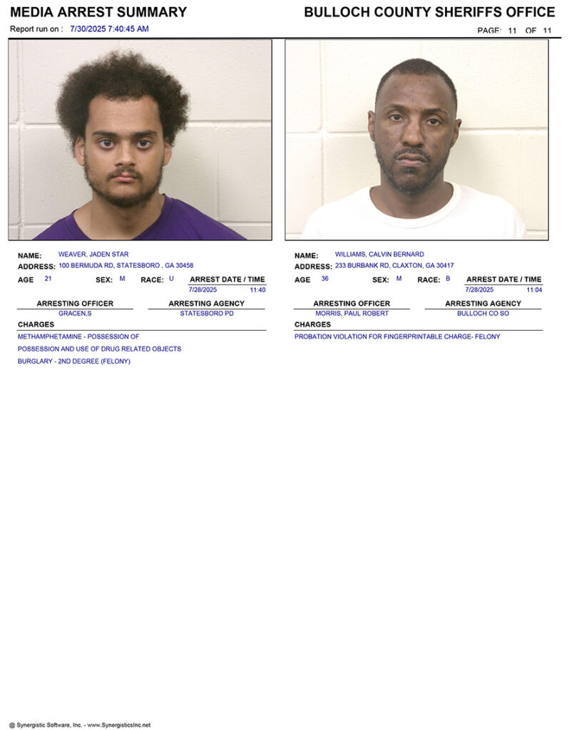 These records are matters of public information provided by the Bulloch County Sheriff’s Office. Booking reports are details of arrests only. All persons below are considered to be innocent unless proven otherwise in a court of law.