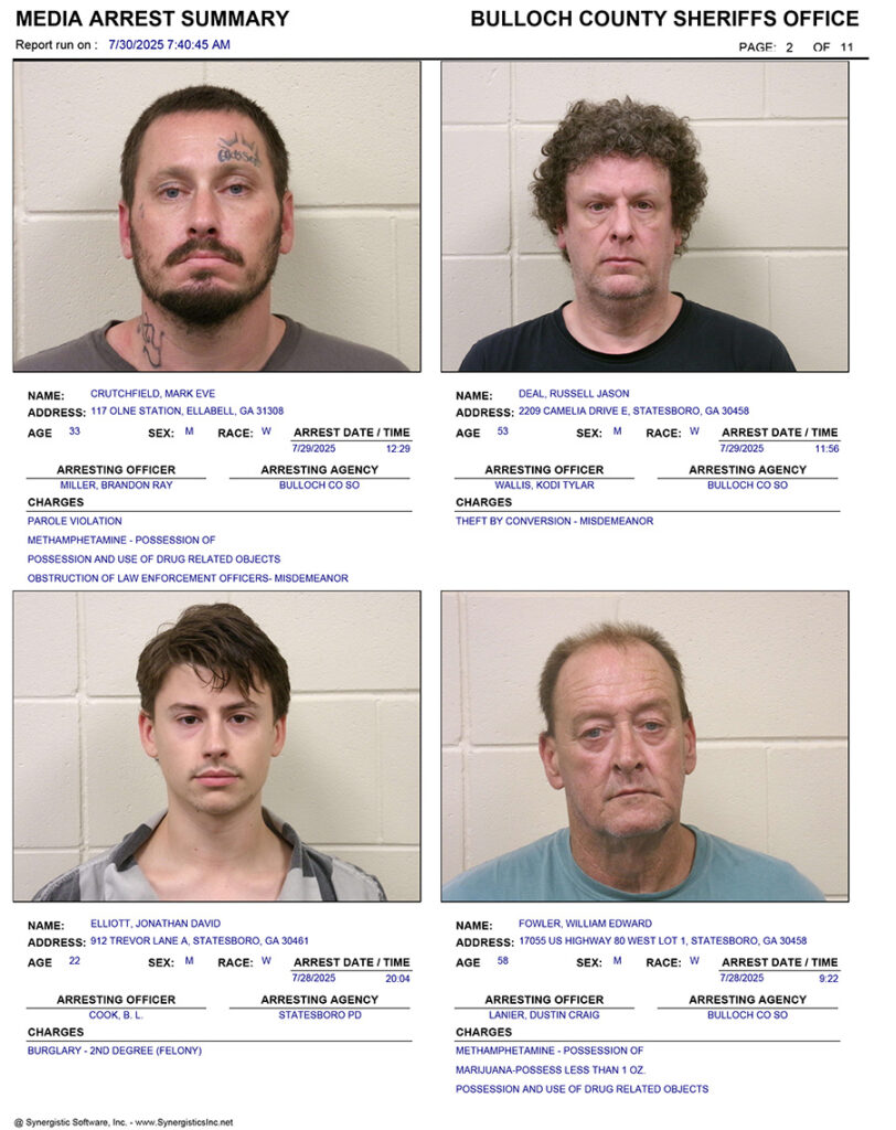These records are matters of public information provided by the Bulloch County Sheriff’s Office. Booking reports are details of arrests only. All persons below are considered to be innocent unless proven otherwise in a court of law.