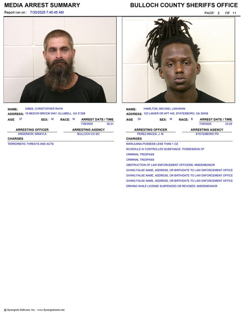 These records are matters of public information provided by the Bulloch County Sheriff’s Office. Booking reports are details of arrests only. All persons below are considered to be innocent unless proven otherwise in a court of law.