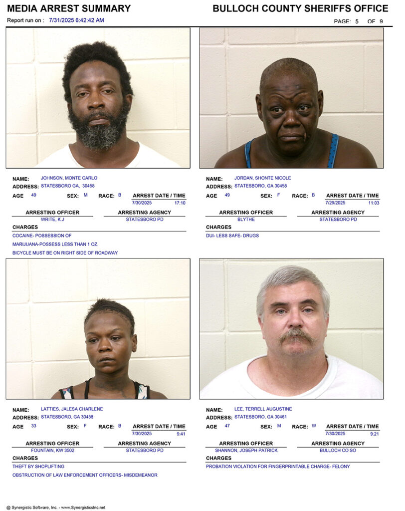 These records are matters of public information provided by the Bulloch County Sheriff’s Office. Booking reports are details of arrests only. All persons below are considered to be innocent unless proven otherwise in a court of law.