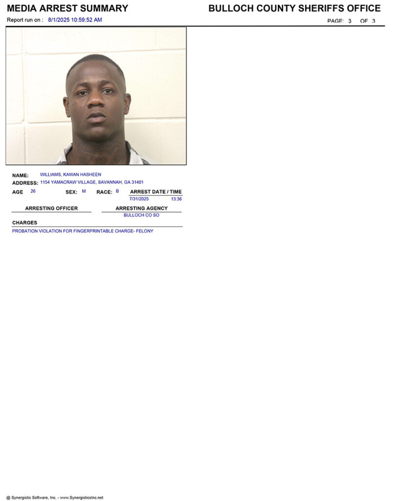 These records are matters of public information provided by the Bulloch County Sheriff’s Office. Booking reports are details of arrests only. All persons below are considered to be innocent unless proven otherwise in a court of law.