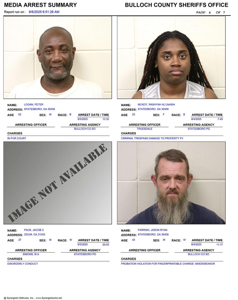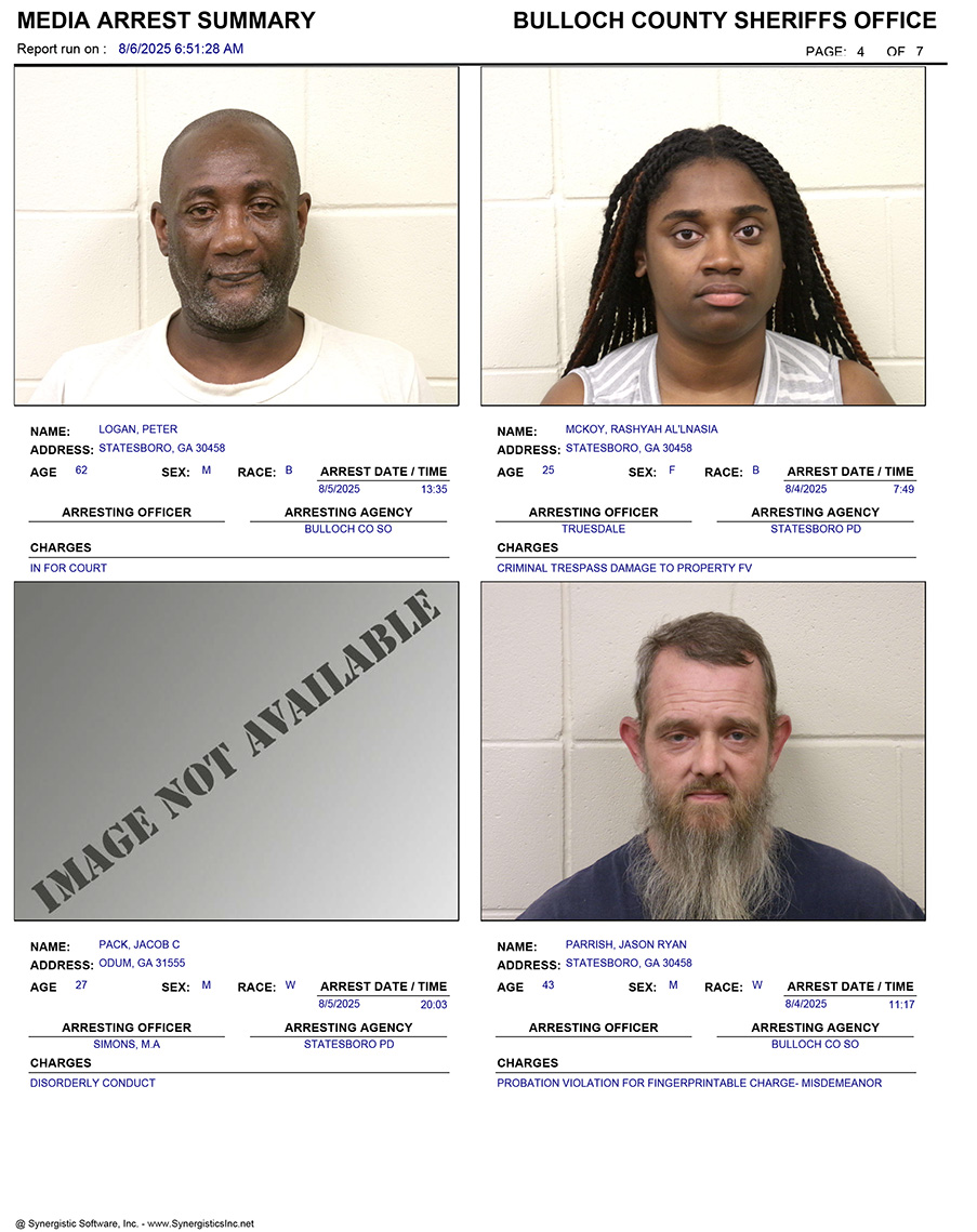 These records are matters of public information provided by the Bulloch County Sheriff’s Office. Booking reports are details of arrests only. All persons below are considered to be innocent unless proven otherwise in a court of law.