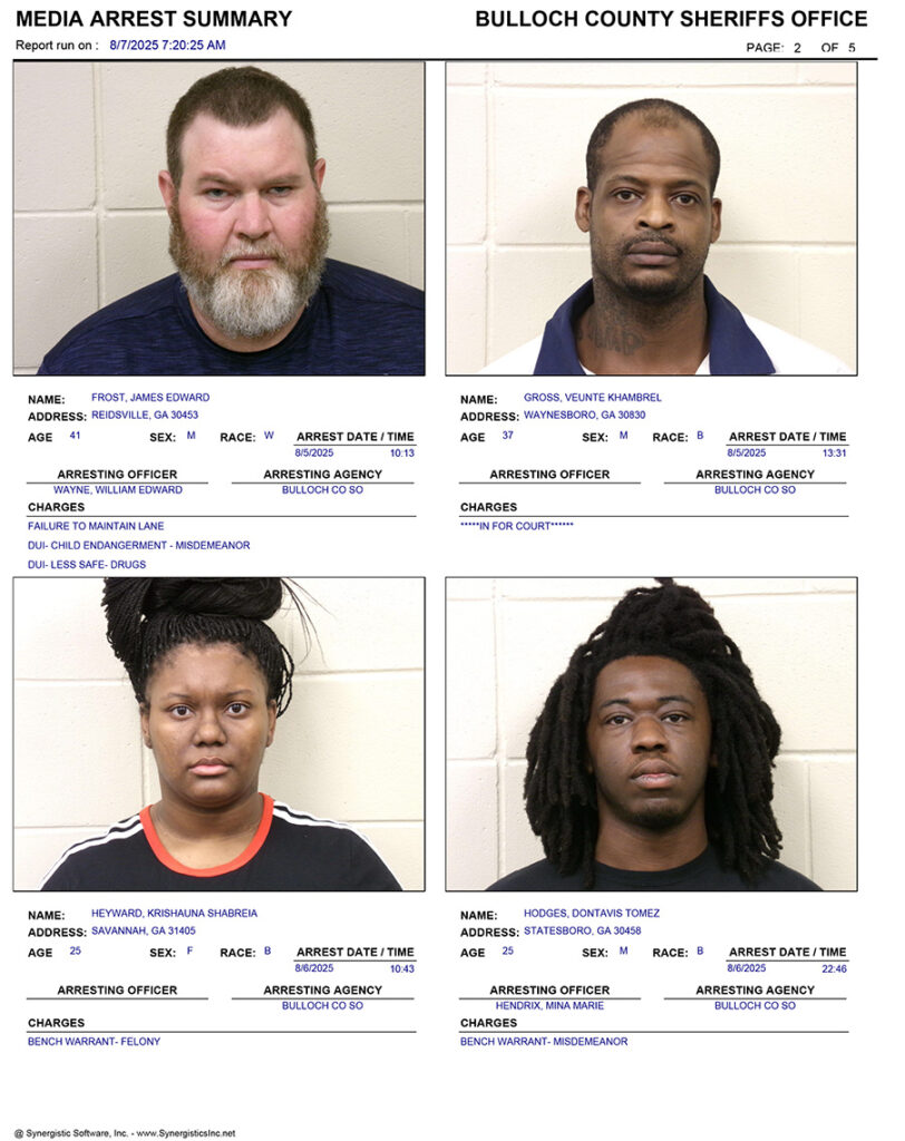 These records are matters of public information provided by the Bulloch County Sheriff’s Office. Booking reports are details of arrests only. All persons below are considered to be innocent unless proven otherwise in a court of law.