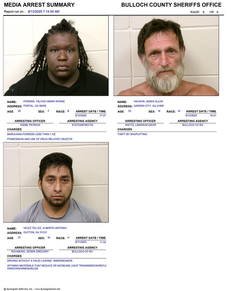 These records are matters of public information provided by the Bulloch County Sheriff’s Office. Booking reports are details of arrests only. All persons below are considered to be innocent unless proven otherwise in a court of law.