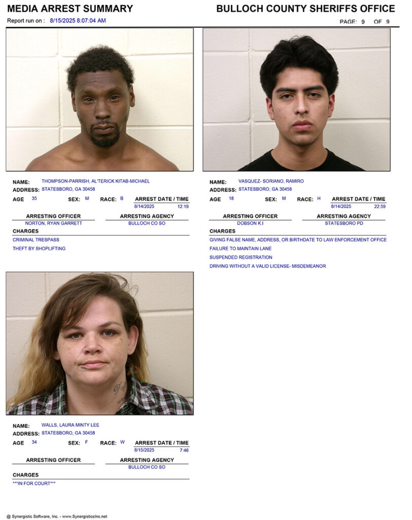 These records are matters of public information provided by the Bulloch County Sheriff’s Office. Booking reports are details of arrests only. All persons below are considered to be innocent unless proven otherwise in a court of law.