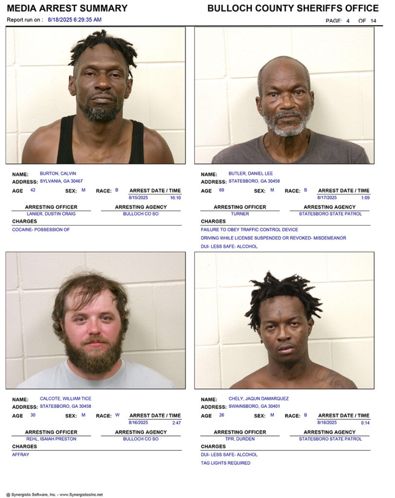 These records are matters of public information provided by the Bulloch County Sheriff’s Office. Booking reports are details of arrests only. All persons below are considered to be innocent unless proven otherwise in a court of law.