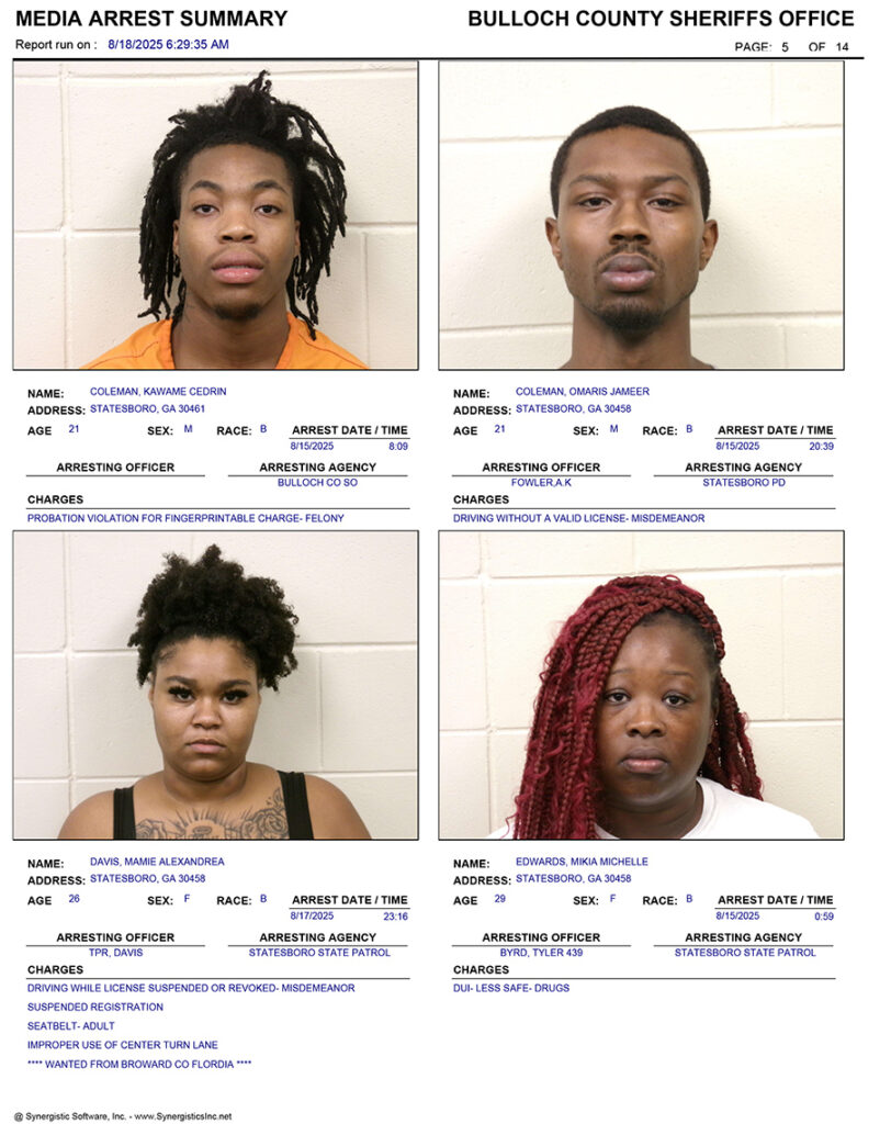 These records are matters of public information provided by the Bulloch County Sheriff’s Office. Booking reports are details of arrests only. All persons below are considered to be innocent unless proven otherwise in a court of law.