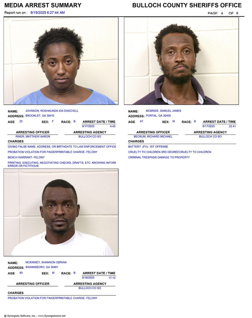 These records are matters of public information provided by the Bulloch County Sheriff’s Office. Booking reports are details of arrests only. All persons below are considered to be innocent unless proven otherwise in a court of law.