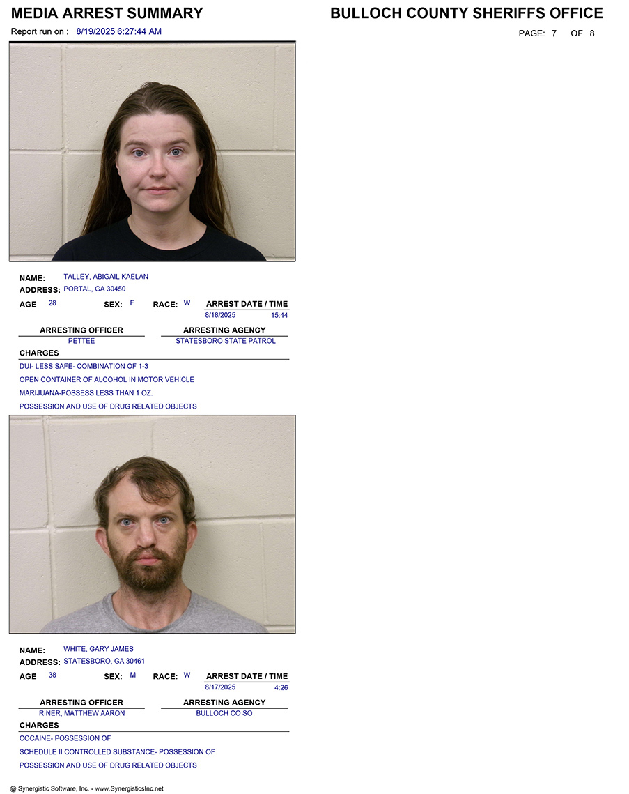 These records are matters of public information provided by the Bulloch County Sheriff’s Office. Booking reports are details of arrests only. All persons below are considered to be innocent unless proven otherwise in a court of law.